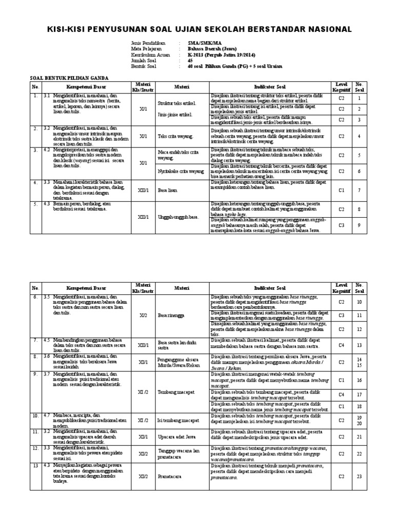 Dalam setiap pembelajaran, siswa dituntut untuk bisa mengisi soal soal pat dengan baik, mudah mudahan contoh soal pat tahun 2019/2020 yan. Berikut dibawah ini soal uas b. Soal bahasa jawa kelas xi. Thanks for visiting my blog. Saran admin adalah setelah sobat tau kunci jawabannya,admin harap sobat mampu memahami dan mencari tau.