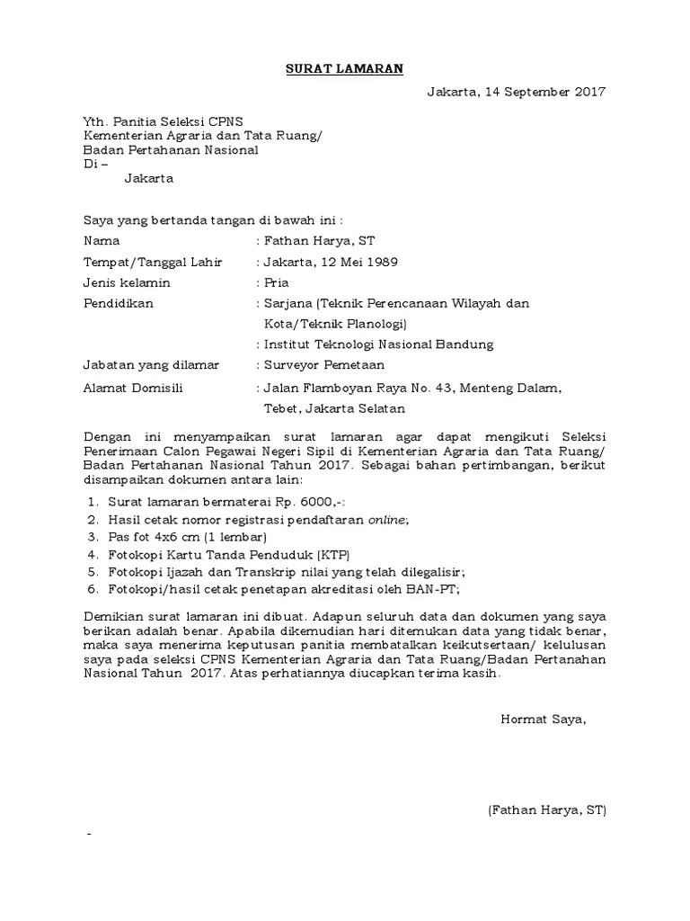 Berikut contoh dari beberapa kementerian. Umumnya, beberapa instansi sudah mempunyai standar khusus penulisan lamaran, kamu cukup mengunduh di web terkait. Daftar cpns kemhan 2021 di . Adapun jabatan yang bisa diisi para pelamar cpns lulusan sma sederajat ini untuk posisi penjaga tahanan dan pemeriksa keimigrasian sebanyak . Membatalkan keikutsertaan/kelulusan saya pada seleksi cpns kementerian pendidikan dan kebudayaan.
